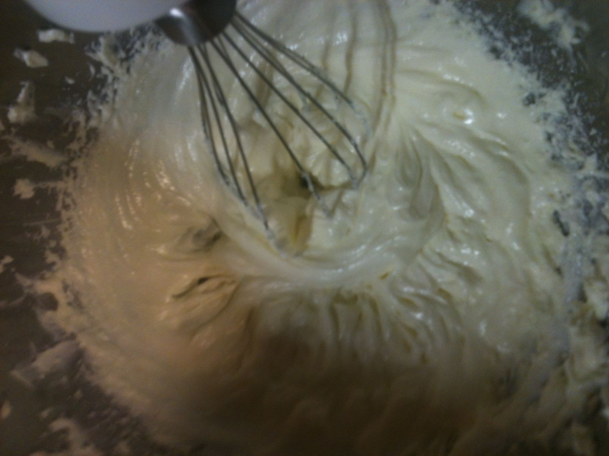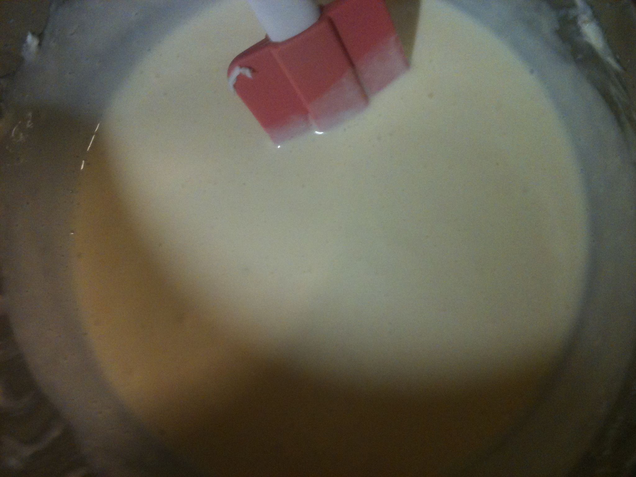 面倒なのでテレビと同じように機械でかき混ぜました。グラニュー糖、卵を順に投入。
