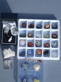 あけまして おめでとうございます今年もどうぞよろしくお願いします。昨日の夜は、某歌合戦が終了後に、兵庫県の恵比寿神社まで、初詣に行って来ました。初めての関西のお正月ということで、有名どころの神社へ参拝です。こちらでは、「えべっさん」と呼ばれて、東京で言うところの「酉の市」のようなのが行われるところです(よね???)いやぁ~~、もう、すんごい人でした。ビックリです。しかも、若者の多いことと言ったら、そりゃぁ、もう。お参りして帰ってきました。今年も、いい年でありますように。そして、今朝は、お雑煮を作って食べて、伊丹空港近くの大型ショッピングセンターへ、福袋を買いに行きました。こちらも、人が多くてビックリでした。愛知に居たときは、開店前に並ぶなんて事、あんまりなかったのに、今日は、開店直前位に着く様に出発したら、全然ダメで、駐車場に入るのにも、大変な渋滞でした。中も、すごい人でした。人気のお店の福袋を購入するために、長~~い列が出来ていました。すごいなぁ。息子は、スポーツウエアの福袋、主人は、ゴルフの福袋を買おうとしたらすでに売り切れだったそうです。娘は、雑貨屋さんのアクセサリーの福袋。私は、石屋さんの福袋と化粧雑貨のお店の福袋。石屋さんの福袋の中身は、これです。 タンブルのセットは、まぁ、こんなもんかなという感じですが、丸玉は、水晶で龍が彫られています。虹が見えて、きれいな丸玉です。お隣の、シルバーのものは、マカバの形で、中には(多分)グリーンのフローライトが入っています。フロラなのかなぁ?こんなシルバーの中に入ってて大丈夫なのだろうか?でも、フロラっぽい虹の出方だしなぁ。あと、ストラップは、下のドロップ型のがサンストーンで、水晶のカットビーズと、う~~ん、これは、シトリンなのだろうか?それとも、染とかコーティングなのだろうか?うすい黄色のカットビーズで出来ています。それから、水晶のピラミッド、これも、虹が見えて、きれいです。いつもは、福袋は、買う気になれなくて、買わないのですが、でも、なんとなく買わないと損したような淋しいようなそんな感じでいたのですが、今回は、2つも買っちゃって、しかも、両方とも、なんだか買って良かったナァって思えるものだったから、とってもうれしかったです。帰りに、屋上駐車場からみた青空がとてもきれいで、雲ひとつなく、お日様は、ピッカピカでした。元旦にそんな清々しい光景を見る事が出来て、とてもよかったです。夜には、我が家の年に一度のごちそう「すき焼き」をたらふく食べて、満足満足。その後、主人とスーパー銭湯に行って、さっぱりしてきました。銭湯も、人でいっぱいでした。いいお正月です。明日も キラキラのいい一日です