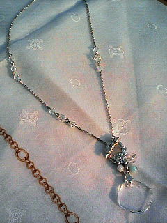 先日ブルーレースのネックレスの依頼があった分で 購入したけれど結局使わなかった石。とてもキレイなのでフレーミングしてみました!石自体が結構大きくって3×2.5cmぐらいあります。それをシルバーの丸小とクリスタルのファイアポリッシュでフレーミングしてみました終わったところで なんとなく石が動きそうだったので MOPの2mmをちょうど持っていたので それでお花をつけて 気持ち出ないようにしてみました。ネック部分はピンでつなげて...トップが大きくなったので長めにしてみました!ホワイト系の服を着ると ブルーレースの色が映えてステキに見えます**************************先週末にお義姉さんとその子ども達が帰ってきていて うちの子達とはとても仲がいいので毎日のように通って ほとんど自分の時間がありませんそんな中 昨日少し下の子をみていてもらった時に 「Wちゃん(下の子)おしっこできたよ~」ということで.... 私はまだ半信半疑でいて...で、今日家にいる時に「おしっこッ」という下の子を試しにトイレに連れていってみるとなんと成功ッオムツのはずれる兆候もなかった下の子! 3歳4ヶ月にしてようやくはずれそうですこれからはちょこちょこ連れていかないといけないのがまた大変だけど...とりあえず...ホッとしました♪