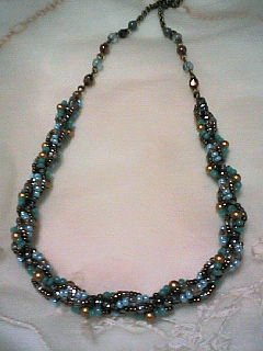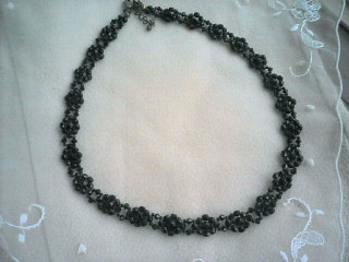 毎日暑いです~なのに子ども達はずっと外で近所の子達と遊んでますお陰でうちは静かでいいのだけどね...だけど、なかなか作る気になれず... とりあえず作りかけにしているものを作り上げることにした。こちらは 貴和さんのレシピだったか?のネックレス。なが~いテグスで編んでいくので 本とはまだ下にシズク型のカボションのようなものを編んでいくのだけれど... 断念ッビーズも スワロの#5000を使っていたけど→FPにしたし... 数が200個近くいるので とても予算的に厳しくって仕方なく変更でもまぁ 出来上がって着けてみると 結構シックでよさげです..ちょっとアップにしてみると...テグスが長い分 編むのが結構手間取り時間かかっちゃいましたおまけに苦手な同じことを繰り返す作業!きっと 色違いは作らないことでしょう