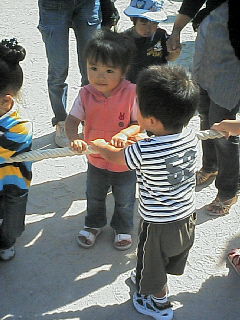 今日は 前上の子が通っていた幼稚園の運動会があって 下の子が出れるものがあったので行って来ました!10時45分ぐらいっていうことだったので半前には行っていたけれど ちょっと遅れてるみたいで... 結構待つことに。その間 幼稚園の時の友達に会ったりして とても懐かしかったです 学校が違うとなかなか会う機会がなかなかないし..ただ上の子は私の後ろに隠れるんだな.. 変なトコで引っ込み思案下の子は..というと 機嫌があまりよくなくって 走る時もずっと手をつないだまま走って。ノートとか絵本が入ったお土産をもらって退場!あっという間に出番は終わり!とりあえず午前中だけ見て帰りました。幼稚園の運動会の方がやっぱりかわいいなぁ~来年が楽しみですそれからは コンビニでおにぎりとかを買って 近くの公園にどんぐり拾いに行って来ました。どんぐりはたくさん拾えたて楽しかったけれど そこは蚊がとっても多くって... 立ち止まったら蚊が足とかに群がってて...今度は虫除けスプレー持ってこようねと 早々に退散することに!子ども達は12箇所ずつ刺されてました~ 面積少ないのにかわいそうッ 痒いはずだ~