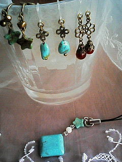 先週は依頼の分や委託販売分の製作と 子ども会と学校の部会のお手伝いもあり...とっても忙しい週でしたなんとか依頼のネックレスたちを木曜日に渡せてホッとしたところです。あまりにもバタバタで写真を撮ったりなど忘れてしまいました~とりあえず今日お金をいただき ネックレスもとっても気にいっていただけた様で 次も...というような話になったようなので がんばって作った甲斐があったもんだ喜んでいただけて ほんとよかった今日はうちのだんなの給料日午前中は支払いやらでバタバタしましたが 午後からはシンプルなイヤリングかピアスが持ってきて欲しいというのでそれを作ることに...メタルビーズ ターコイズとカーネリアンで作ってみました。今回は天然石が主です!下の正方形のターコイズは福袋に入っていたもの。結構使えそうなのばっかり入っていたので これを使うのも楽しみ♪机の上はものすご~く散らかってるので まずは片付けないと..もうすぐ長い夏休みだぁ~