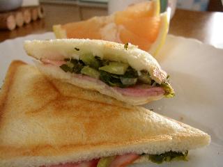 本日のホットサンドは ショルダーベーコンと たまごのスクランブルエッグです。見た目がイマイチですが味もイマイチです。トロトロのスクランブルエッグがホットサンドにする途中で さらに火がはいってしまうね。あかんよ。たまごは なかなかクセモノですよ。ささっと作れるのはいいんだけど味にパンチがないので気を抜くと ぼんやりサンドになっちゃうよ。朝から気合ははいらないから次回からは どうにかしよう。ひとり対策会議中。きのうは 昔からの友達から連絡をもらってすっごくハッピーな気分になりました♪うれしくって 何度も何度ももらったメールを見てにんまり♪私のほうこそありがとう。ふく○♪今日もがんばるで~!Have a good day.Keep your smile.