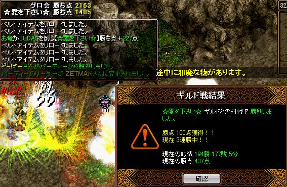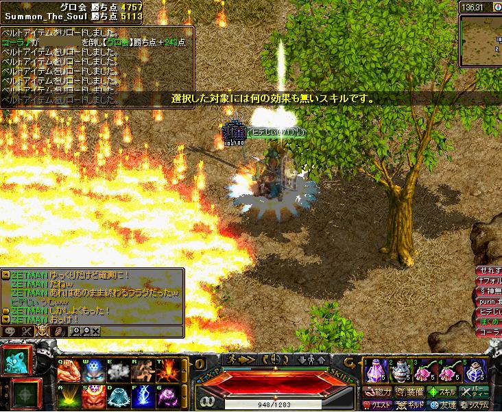 やあ細木ですよ今回の相手は〓■●パタッさん相手はBIS1アチャ2?剣士1悪魔1プリ2?WIZ2開始前に相手の天使が自陣に来ていたので早々にぶつかるのかと思いきや どうやら偵察のようでした相手の天使 黒船来航さんはとても足が速く終始グロ会のスピードスターのショスさんとレースをしてましたショスさん率いる知識PTは相手と衝突するものの物理PTはそのスピードについていけず 空気状態でした相手はBIS1枚だったので知識がよく効き終始グロ会ペースの戦いでした〓■●パタッさん対戦ありがとうございました!Rさんが久々のLA!