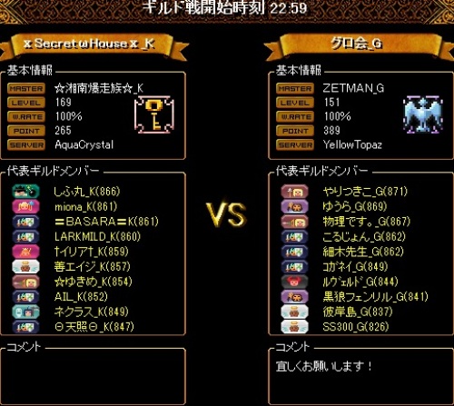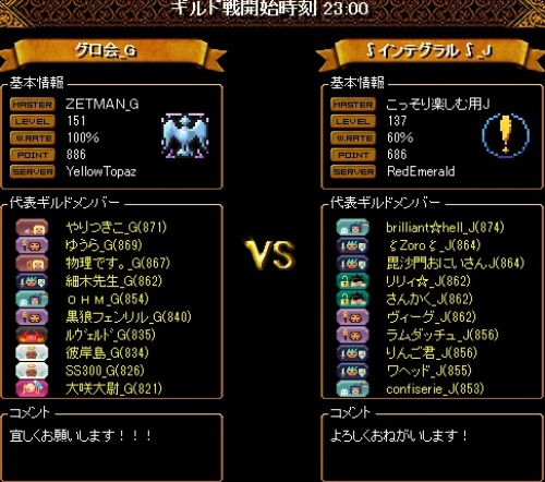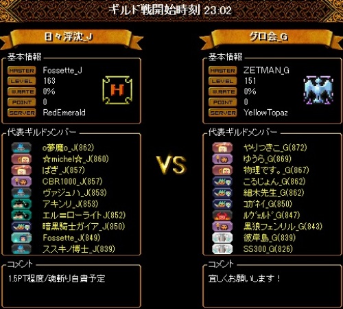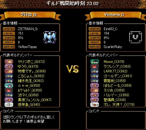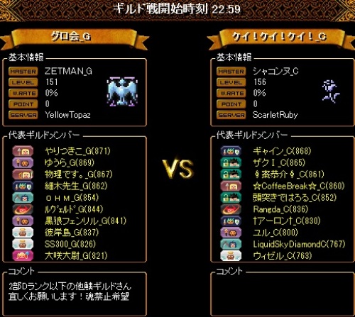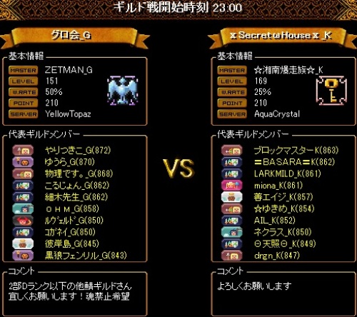 アリーナランキングは【2部D】のようです。相手集まり:1PT半くらい(悪魔1→0、霊術1。高スキル有)味方集まり:16人→15人最近妙にGv会場が重いですよね。今日も二人落ちて、一人は帰ってきたけど一人は街戻り・・・。その街戻りしたがっちゃん曰く、相手様の悪魔さんも街に居たそうなので、おそらく強制でしょう・・・。どうにかならんのかこれ最初に天使さんから崩すことに成功し、先制点を取ることに成功しますが、霊術さんのSLvがえぐく、深く攻め込めない感じに。おまけにスイッチが結構の頻度で飛んできていたので、結構早い段階でブレエビ抜きを決行。早速前回の反省が活かされる形にwまぁスイッチは理想を言うとモーション見て避けるのが一番良いんだろうけど・・・先制点を取れたこともあって、終始安定して戦うことができました。何度か失点はしますが、そこで焦ることなく戦えたのが良かった!マンダは初手檻指や!対戦ありがとうございました。