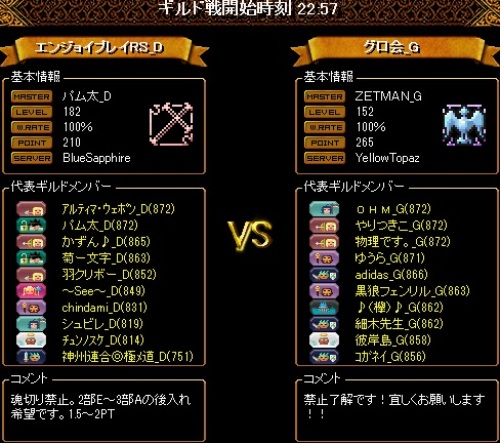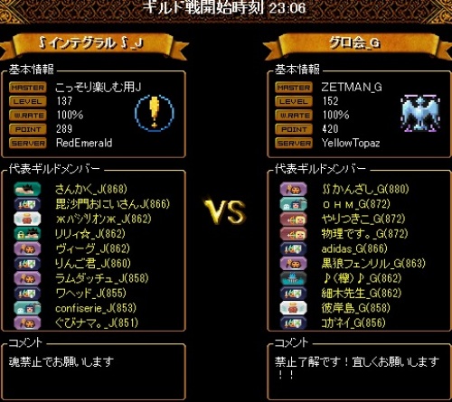 こちらの揃いは17名強い霊術さんがいるとわかっていても2天使だったので、武道さんにソロをやってもらったのは申し訳なかったですが、よく相手を足止めしてくれ、うまく歯車が回った印象でした。お互い火力は剣士1アチャ1でしたが、妨害職の少しの差が結果として大きく出ていました。対戦ありがとうございました!