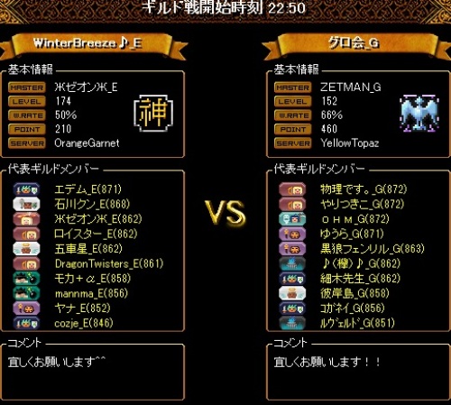 総火力の凄まじい高さで、倒された瞬間を知覚出来ないことが2度ほどありました。WIZがこんな体たらくでは皆に申し訳が立たないですね・・・こちらの集まりはちょうど2PTで火力を1名ずつの配置でしたが、連携した時のみならずそれぞれのPTだけの運用でもしっかり機能し点を取れた事が、結果として大きかったと思います。対戦ありがとうございました!