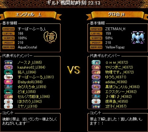 本日はバランスのいいフル2PTでしたが、天使が各PT1のため多数の相手武道陣とうさぎで天使が狙われ失点がかさむ形になりました。が、あの妨害粘着だと1天使じゃどうしようもないだろうなぁ・・・対戦ありがとうございました!