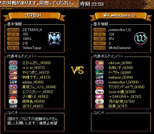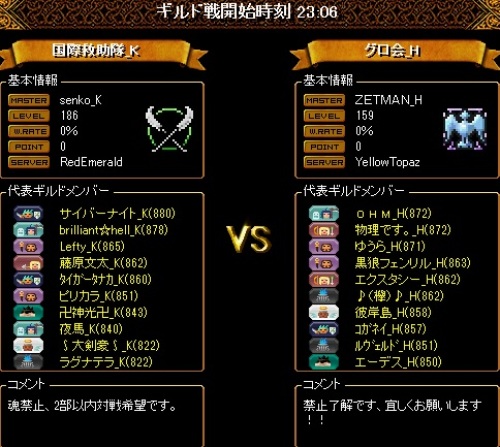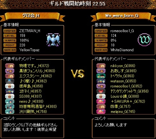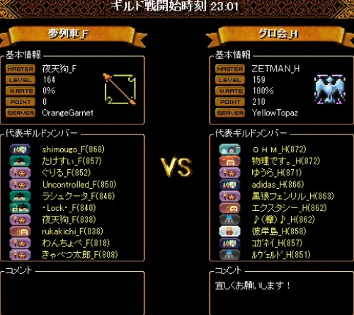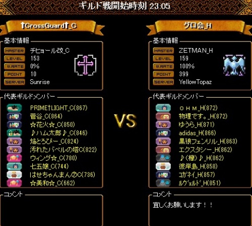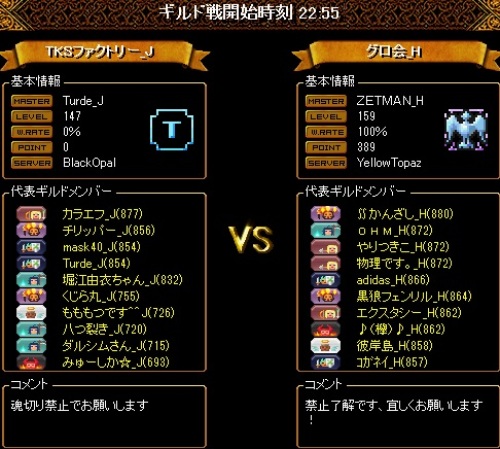 本日は職バランスの良い2PTの集まりでしたが、片方のPTは1WIZになってしまい、相当キツそうでしたがそこをなんとか無失点で終えてくれたのはすごい働きだったと確信をもって言えるほど凄まじいお相手方の総火力でした・・・自分の居た2WIZPTのほうでは巨大な真空から守りきれず死なせてしまいましたが、この結果を想像出来ないほど常にスリリングで、精神的な余裕を持てた時間は試合終了までありませんでした。対戦ありがとうございました!
