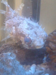 皆さん、ご心配おかけしました!瀕死のスジモヨウフグのシラナミは復活です!*白い点は、人口海水の結晶。餌も食べました。よかった~新しいポンプ&ろ過装置を購入しました。水も少しだけ取り替えて(ダメージを追っているので、更なる負担を避けるため)お水もきれいになりました。ハオコゼのハオちゃんの死体も発見されました。死ぬ前日に撮ったハオちゃん。皆さんに励ましの言葉を頂き、うれしかったです。切なくなったけど・・・。シラナミが元気になったので、ちょっと報われました。