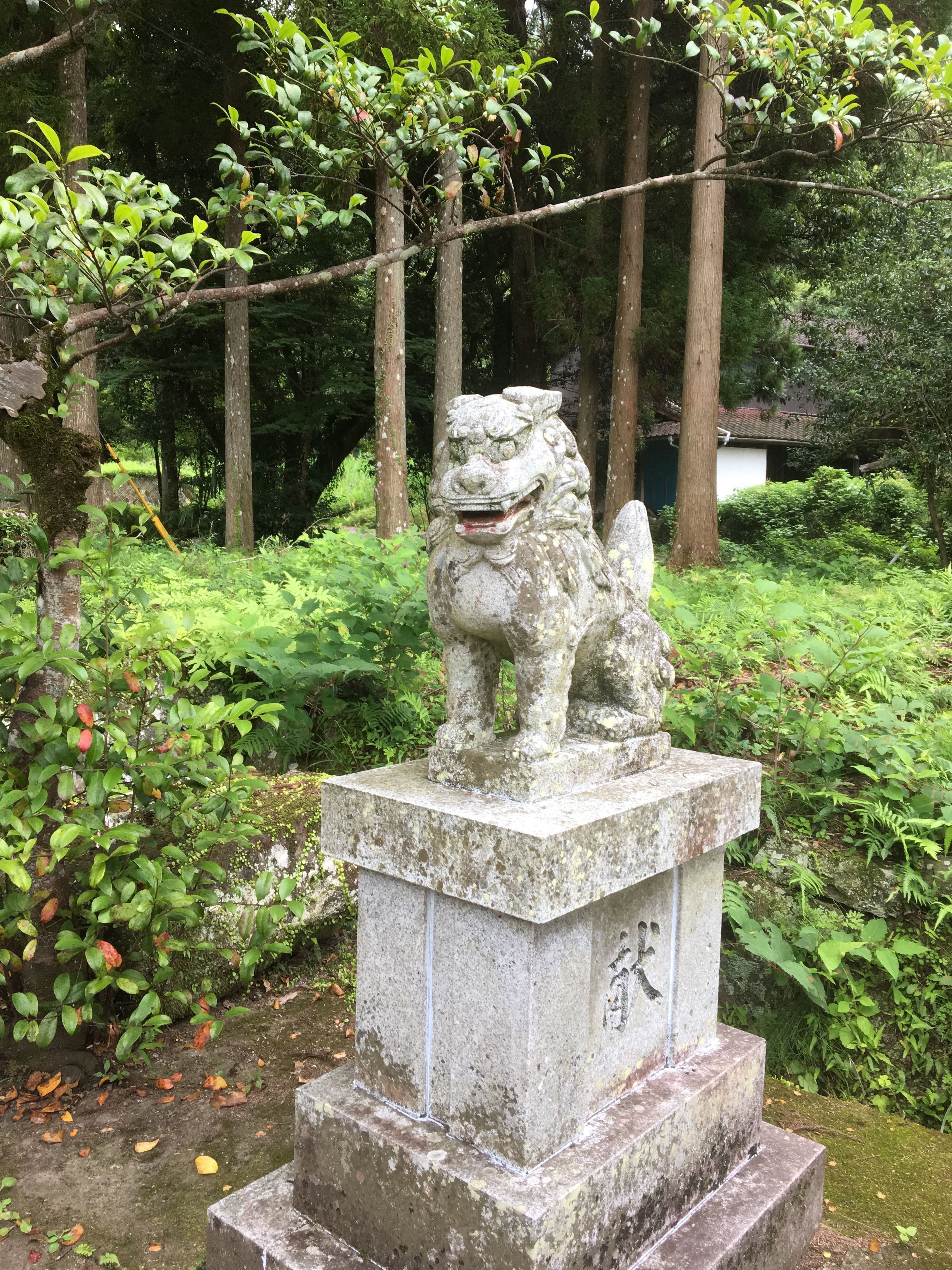 湧水茶屋の隣には神社がありハンサムな狛犬がいました。