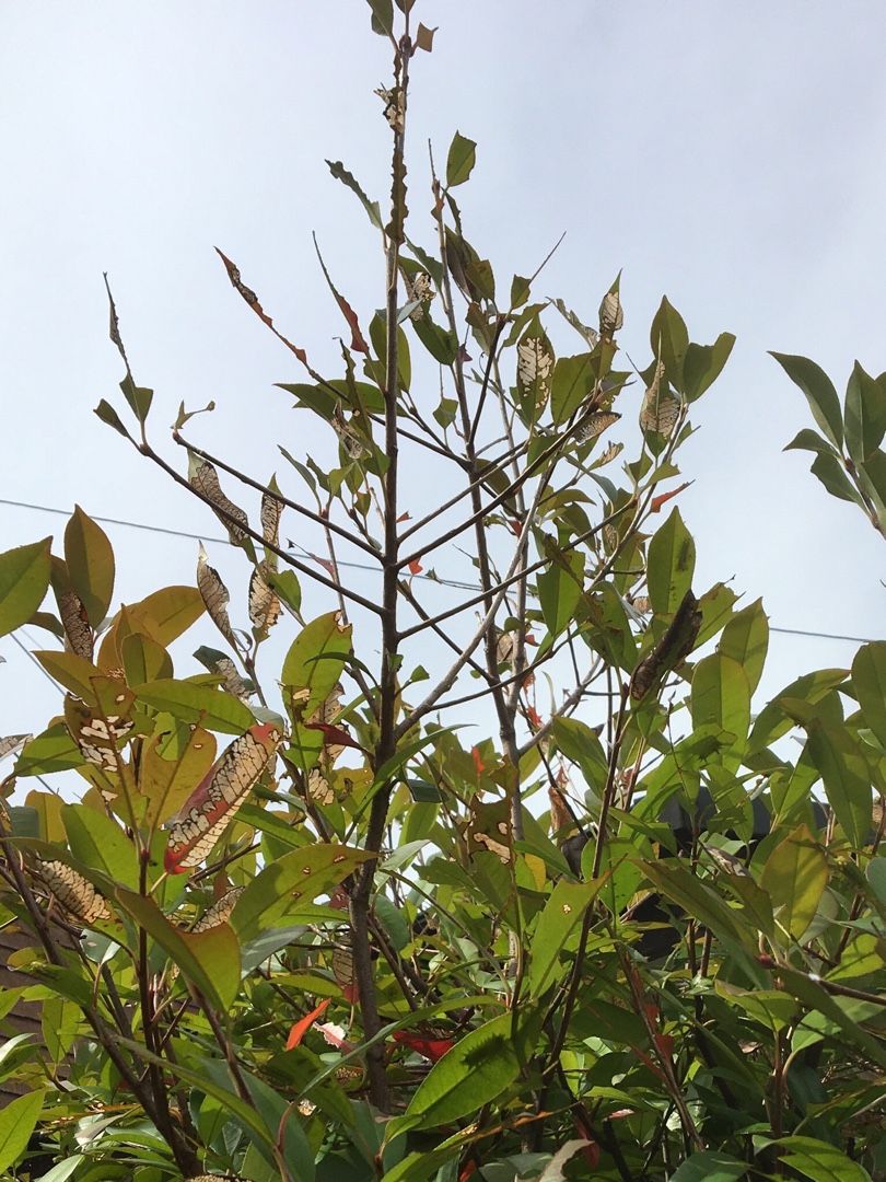庭の木が随分荒れていたので良く見ると毒虫がいっぱい!これに触ると刺されて物凄く痛い。バケツに水を入れ、火ばさみで捕まえ水の中に放り込むと、水には弱い様でした。葉の裏側に隠れていて、柿の木やプラムの木に毎年来ます。気をつけて下さいね!