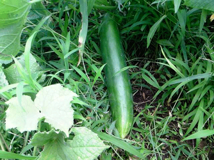 キュウリが毎日1本ずつ大きくなってます。今年もキュウリのツルに指を当ててみました。昨年は時間を見てなかったので今年は時計を見ながらやってみたところ2分程で動き出し,3分で巻き付く感じでした。やってみると,面白いですよ♪空地にビニール袋で育ててるひまわり、台風にも倒れず立っていましたが首を垂れてお疲れの様です・・うっかり熟れてしまったゴーヤ、中を開けると鮮やかな種!!あまりに綺麗な種なので~~おそるおそる食べてみると、あ,フルーツの味だ!!種の周りのぬるぬるが甘い!!知らなかったなあ畑では大きなバッタが・・こっちを見てるようです。