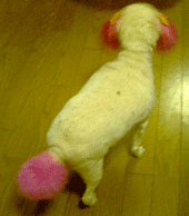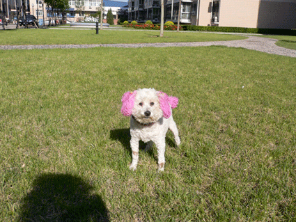 近所に10年以上住んでた中国のお姉さんが国に帰る時飼っていた犬の「チイちゃん」を中国に連れて行きました。チイちゃんも飛行機で海外に連れて行かれるとは夢にも思ってなかったと思いますが・・こう見えても、チイちゃんは雄です。更に、おじいさんです!お姉さんは中国に帰ったらお友達に自慢する為に真っ白だったチイちゃんの毛を「おしゃれに」染めました。「チイちゃんは雄です」中国では血統書付きの犬しか入れてもらえないとの事です。それと犬はよく盗まれて、食べられちゃうそうですがチイちゃんは見ての通り、まずそうなので大丈夫です!!(老犬)