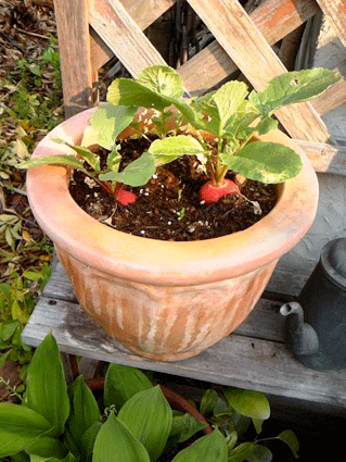 うっかり花の種と思って植えたのがラディッシュでした~~いつの間にかこんなに大きく育ちコップと比べても,この大きさ!!間違うのも良いもんだ♪でも、3個だけ・・・文旦の木も植えました。下には腐葉土を敷いてみました。