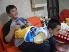 大がちゅ、9時過ぎに帰ってきて、うだうだゆってってさっき寝たのに奥の部屋から コンコン咳して。風邪薬&水持って飲み!!!ってゆって飲ませた。「苦い?まずい?」ってゆーて、大がちゅ、「うーん、まずいっ!もう一個!」。。。。。。アホか。。。。。かり、すかさず、「ほな、もう1っこな。」「すんません、もういいです」と。しんどいのに、笑いとるなよ。はよ寝なはれ。。。関西人って。。。体張るよなぁ。。。。(苦笑)