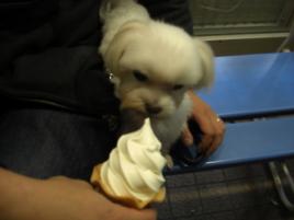 大がちゅ8時前に帰ってきて、9時前に。。。「ソフトクリーム食べにいこか」って。高速使って15分位走ってった香芝っちゅーインターのとこ。。。小がちゅも連れて行きました。。。着いて2つ頼んだはええけど。。。さっぶ~~~~!!!散歩がてらにウロウロしてたら、同じ年やっていうシーズーが居て。。。その子、小がちゅにかかってくるかかってくるwww 小がちゅ、かなりビビッてた(笑)男の子のクセに根性無しが。。。