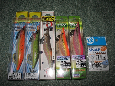 前回の釣行から一週間、明日はリベンジでエギングに行きますまぁ、まだ行き先は決めていないので正確にはリベンジと呼べるかわかりませんがメンバーは前回と同様Wっちで、朝に行き先を相談します。ということで、前回ロストした分のエギを補充してきました出張の帰り道で、行きつけの釣具屋の閉店時間に間に合いそうになかったので途中にある同系列の店に寄ったのですが、僕の欲していたスケスケスケルトンタイプがあまり置いてありませんでした仕方がないので、いつものアオラとアオリーQネオ、Daiwaのエギ(久しぶりに買いました)と、ブリーデンのスナップ「となりのアイツ」があったので購入です。明日こそは○ボ脱出できますようにっ↓↓↓↓↓↓↓↓ にほんブログ村
