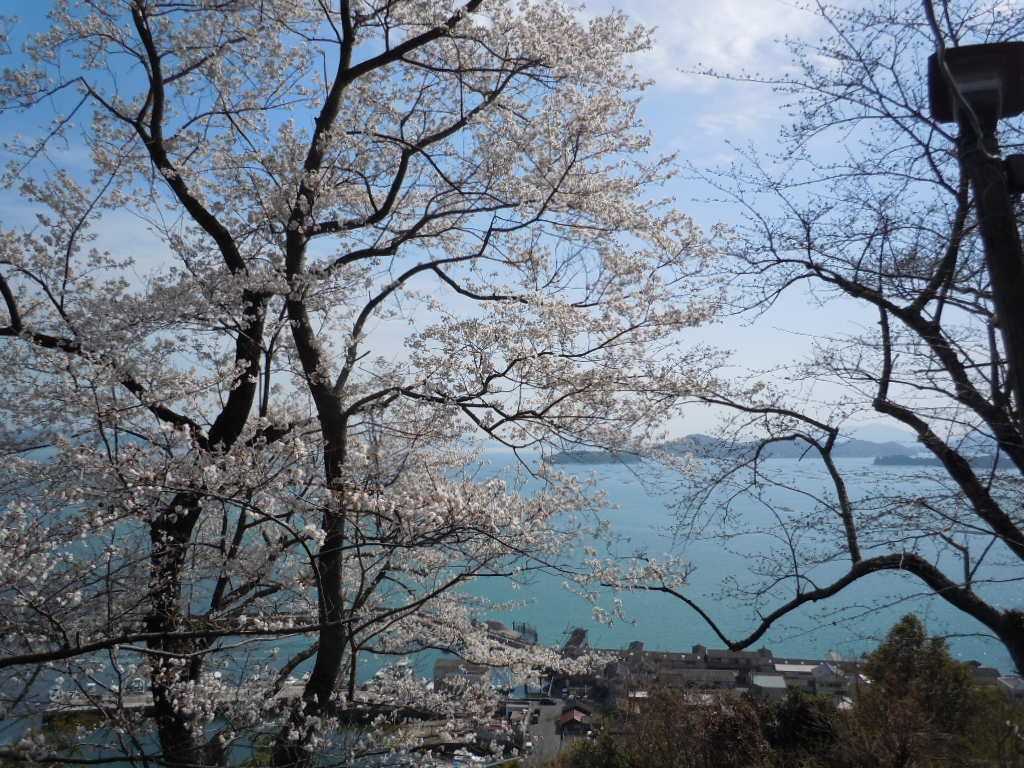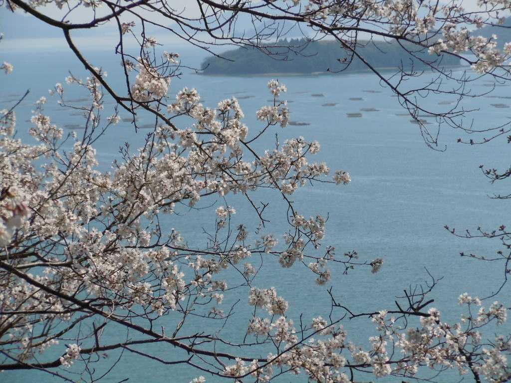 東広島市の安芸津公湾から小高い場所に見える正福寺公園。桜の時期は、山手に蜜集して咲き乱れるため、山がピンク色に染まっていてと通りすがりもでも見つけやすいお花見スポットです。
