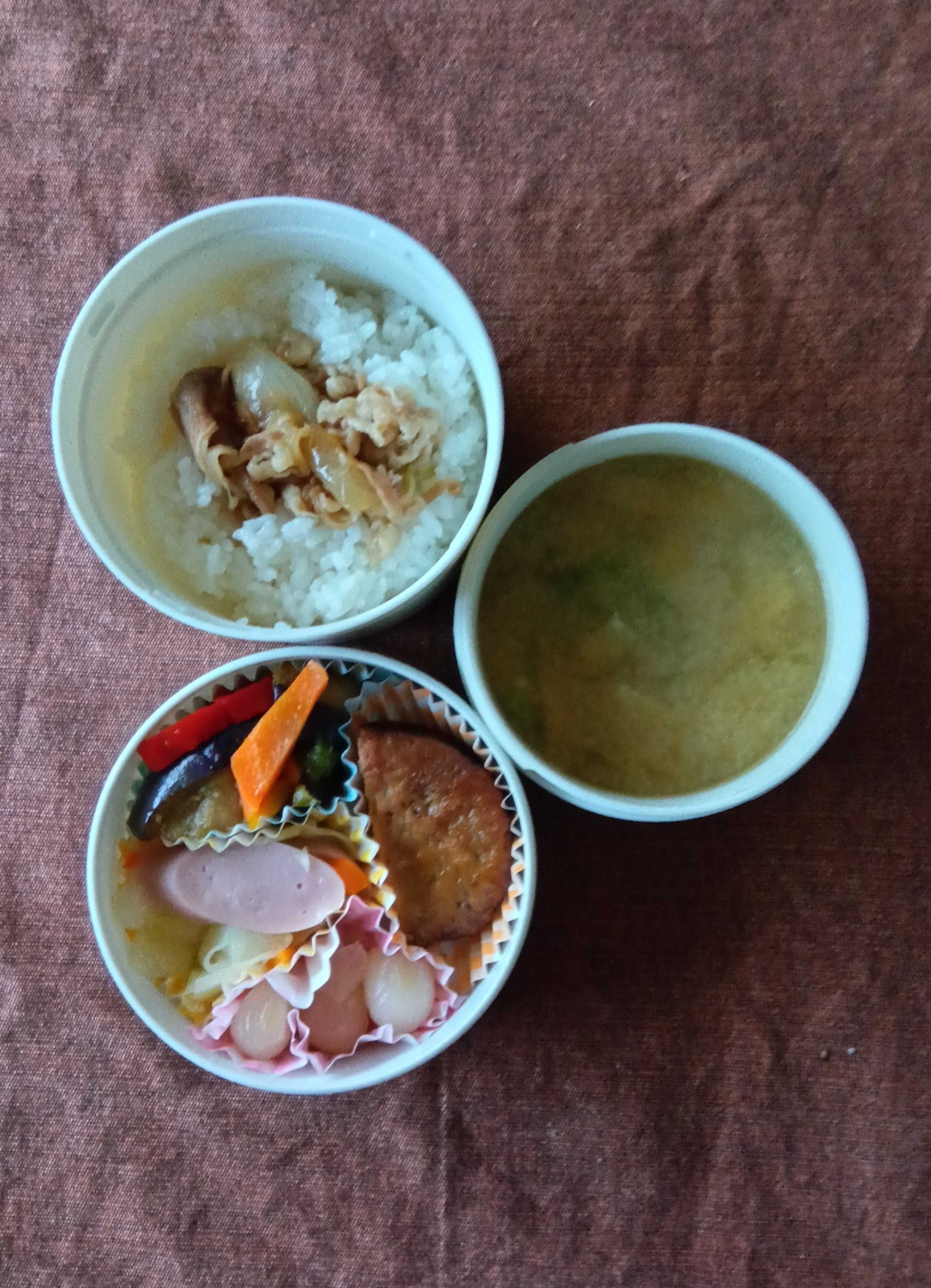 金曜日のお弁当、今週は終わりだ。一番ほっとする金曜日。今日のお弁当です。キャベツソーセージ炒め茄子パプリカ生姜焼きハンバーグ(レトルト)らっきょうご飯(松屋の牛丼のせ)味噌汁(オクラ油揚げ)いやぁ~ 食材がないので苦しんで作ったおかずです。困った困ったわ。1週間以上、買い物行かないというね。文句言わないで、「ありがとうね」って言ってくれるのでほんとこちらこそありがとう。お粗末様でした。冷凍野菜 カンタン菜園パプリカ スライス3色ミックス 500g 12619(冷凍食品 業務用 おかず お弁当 簡単 時短 カット野菜 ピーマン)【業務用 冷凍野菜】揚げ茄子乱切り 500g(約30-40個入) 18087(冷凍食品 業務用 おかず お弁当 冷凍 カット 野菜 ナス 淡色野菜 急速冷凍 和食付け合せメニュー 簡単 便利 調理 短縮)【ふるさと納税】累計300万個突破記念!レンチン可!湯煎可!ベストな4種ハンバーグから選べる4個〜20個セット ハンバーグ 温めるだけ 簡単 大容量 業務用 レトルト 冷凍 食べ比べ レンジ 湯せん 個包装 4種セット