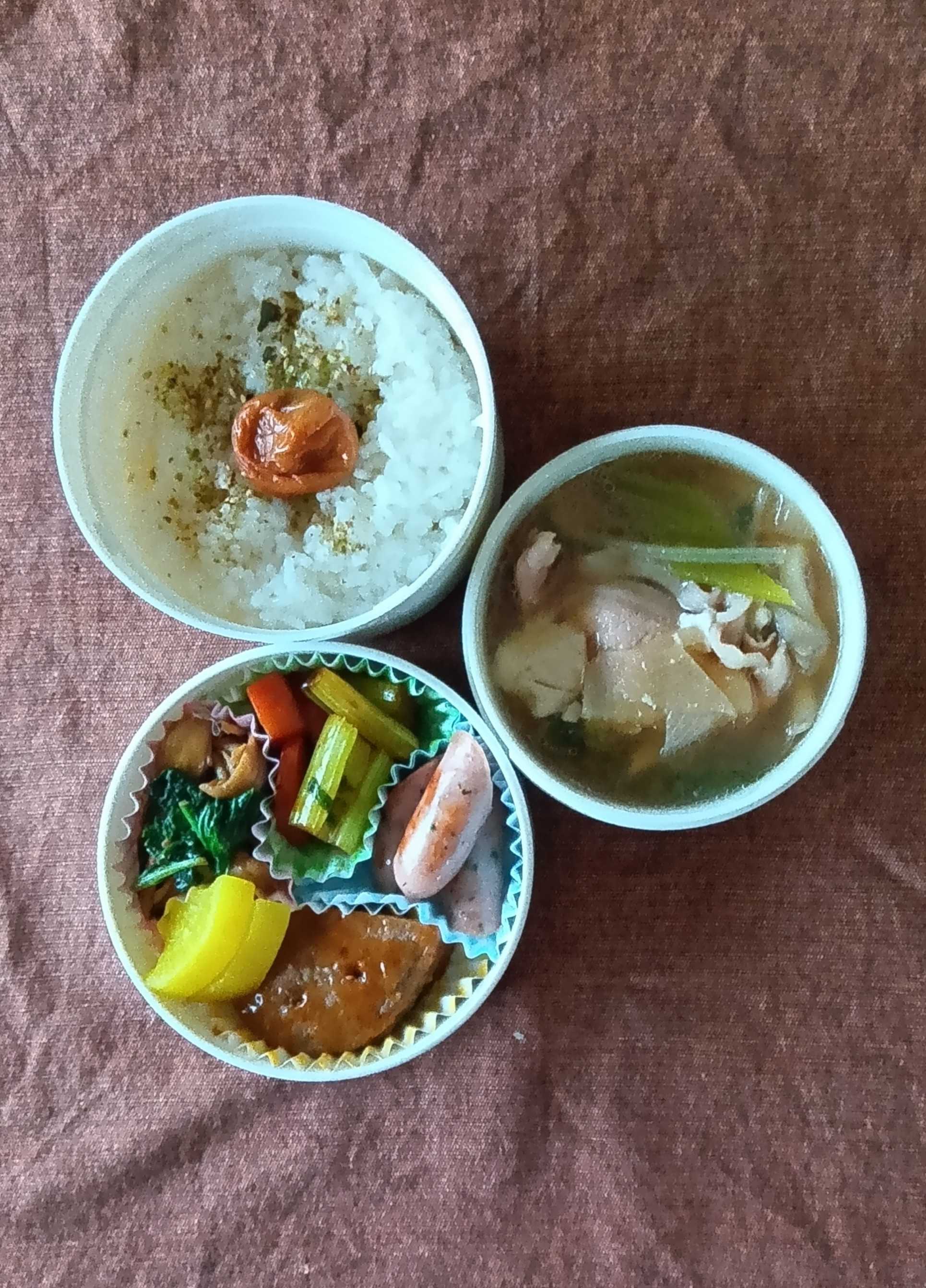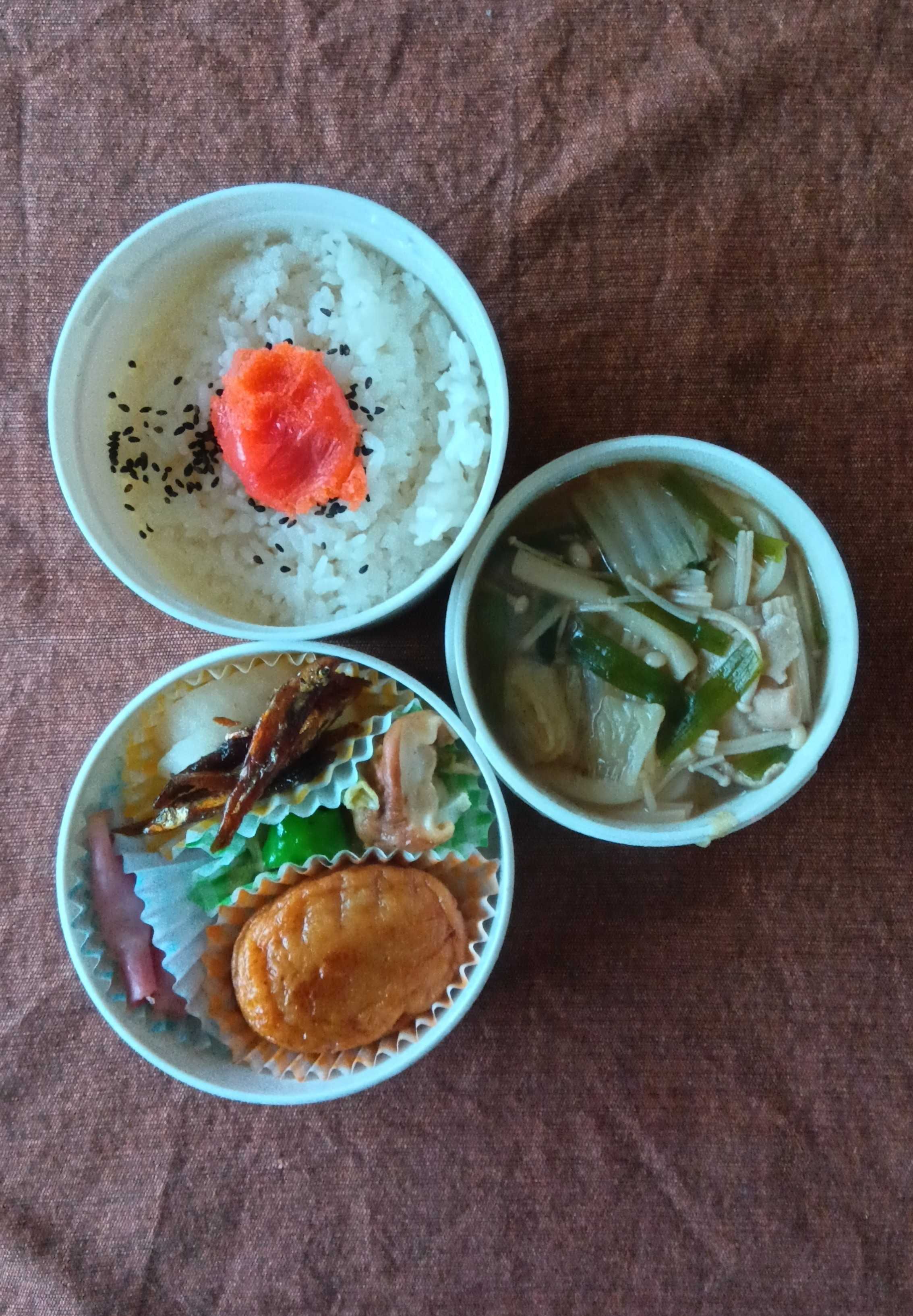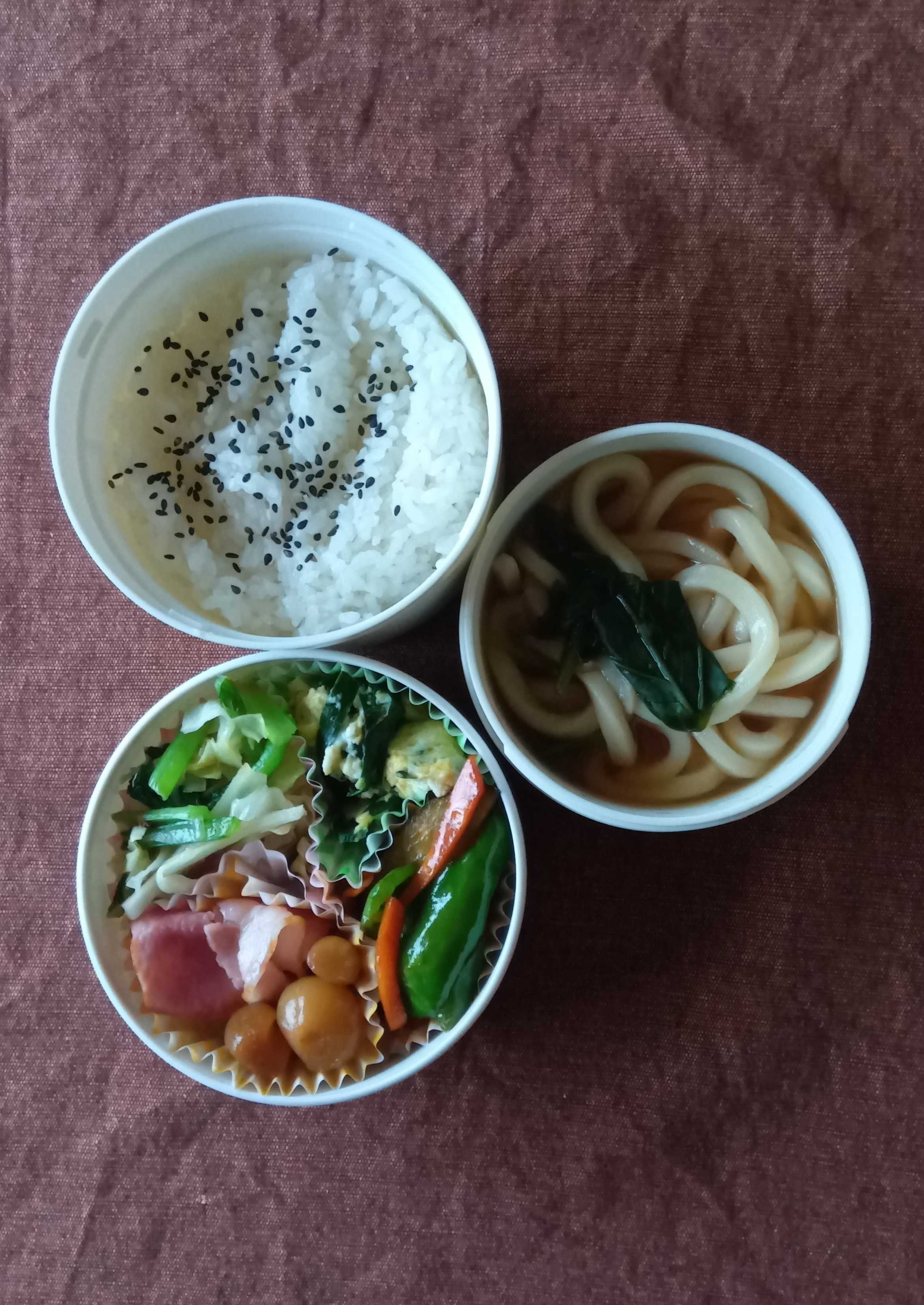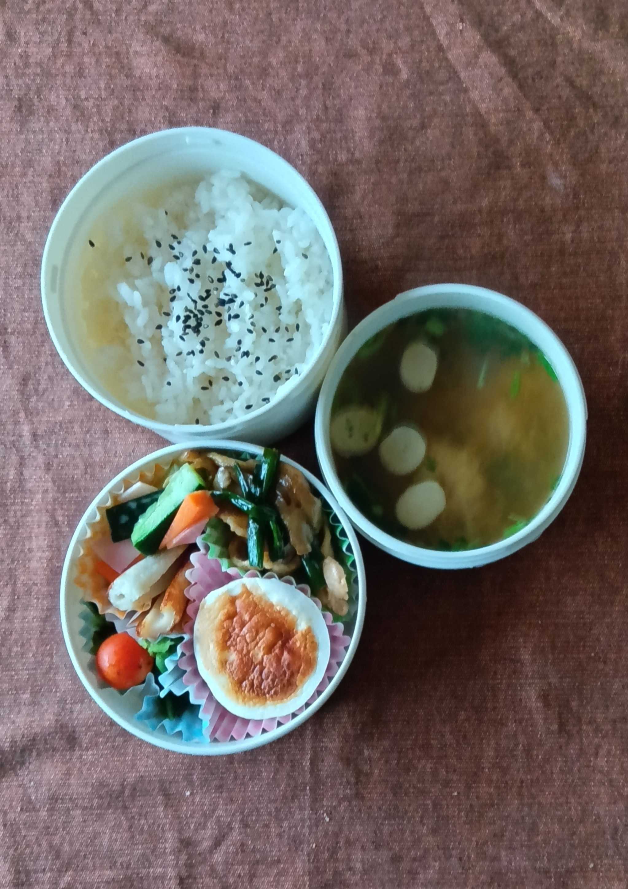 今週も始まりました。静かでゆったりした始まり。今日のお弁当です。キャベツ小松菜中華炒めニラの玉子とじピーマン茄子人参タレ焼きベーコン炒め黒酢らっきょうご飯(ごま塩ぱっぱ)煮込みうどんどうしても週末は外食ばかり。野菜不足、発酵食品も少ない。うん、老夫婦にはこんな朝で静かな田舎時間があってる。【マラソン限定!最大2000円OFFクーポン配布中!】丸美屋フーズ ごましお 250g × 4袋【10月4日~6日クーポンで1,000円ポッキリ!】【お買い物マラソンポイント20倍】【内容量が選べる】 訳ありだけど、色々な料理に大活躍!切り落としベーコン 540g 〜 1440g 送料無料 訳あり 小分け パック 切り落とし パスタ サラダ スープ お試し 大容量 鹿児島市 ギフト【ふるさと納税】【2026年発送予約】知内産 1番ニラ!!「北の華」選べる10束〜50束【JA新はこだて】ニラ 野菜 にら 北海道産 北の華 知内町 ふるさと納税送料無料!【国産 黒酢らっきょう 120g×2袋 送料無料セット】【ポスト投函】国産らっきょう漬け らっきょ辣韭 おつまみ おかず ごはんのおとも シャキシャキ歯ごたえ らっきょう酢漬け 漬物*