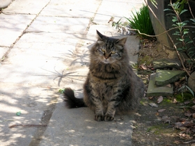 ブーちゃんが、戻った!19時頃、どこからともなくブーちゃんと思える鳴き声が・・・。すぐに、声のする方へ・・・。しかし、それほどたくさん鳴いてくれるわけではないので、場所がわからない。が、間違いなくブーちゃんの声。必死に探したら、わかりました!なんと、台所の縁の下にいたんです!台所付近は、通風孔に鉄格子がはめてあるので、出入りは出来ない。ブーちゃんは、どこぞから迷い込んだらしい。って、家の南側にある縁側の下からだと思うんだけどね。そこは、子猫がいる時にも、出入りしてましたから。で、とにかく、その縁側の方からブーちゃんを呼んで、うまくおびき寄せたら、自分で出てきましたわ。もしかしたらと最悪の事態を覚悟していたので、とりあえず戻ってきてくれたので一安心!ところが、ブーちゃんの姿を見てたまげた!この画像は、違うけどね・・・。縁の下から出てきたブーちゃんは、まるで野良猫。すっかりやせ細り、毛もボロボロのチレヂレ。そして、出てきてからエサを食べ始めたのですが、さっぱり落ち着かない。しきりにまわりを警戒している。どうやら、ノミのおかげでノイローゼになってるらしい。身体中のあちこちがかゆいのは、見えない何かが、自分のところへやって来て、攻撃していると思っているのだろう。その見えない何かを警戒し、見えない何かから逃れようとしているらしい。だから、落ち着かないし、一箇所にじっとしていることが出来ないらしい。ほんのちょっとエサを口にしたかと思ったら、あっという間にどこぞへ消え失せた。こんなことなら、もっとはやくペッツテクトを使ってやるべきだったと後悔だわ。この症状は、ノミが大発生した昨年の夏と同じ。先日も書いたけど、今年は、先週末から急にノミが増えた。外を歩くと、ズボンのスソに数匹のノミがくっついてくるぐらいですから。ウチの庭そのものにノミ対策をして、さらには、ブーちゃんにも新たなノミ対策をしてやらないといけないかなー。とりあえず、ブーちゃん用には、粉末式のノミ駆除剤を既に購入してあるので、それを使うとして、自分の家の庭でのノミ対策って、どうしたら良いのよ?室内は、バルサンがあるけどねー・・・。ま、こんな時こそ、ネットを活用しなくちゃですな。どなたか良い方法を知ってらっしゃいましたら、教えて下さい。