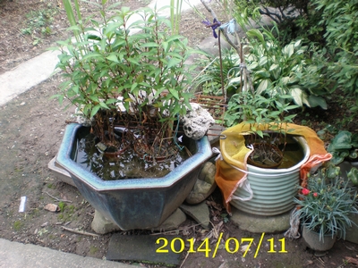 ちなみに、下の二つの水がめのドジョウとメダカは、元気にしてます。