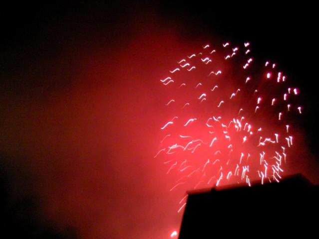 写メでは分かりにくいかも知れませんが花火見てきました家族全員で天神さんにいきその後ハッチパパのお婆ちゃんの家の屋上から見てきました。虹は泣かずに花火を見ていました。ハッチはって言うとハッチバアバアに拉致され遊びに行ったので一緒に行きませんでした。真下から見ていたので音も煙りもすごかったですが最近にないぐらい良く花火が上っていたと思います。クライマックスは圧巻でした満喫した花火でした