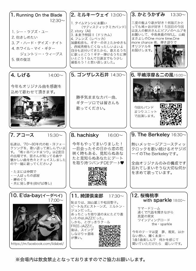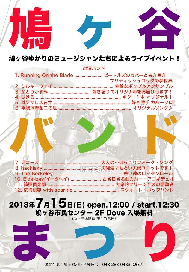 出演予定バンドは、その1と同じく「hachisky」と「綺譚倶楽部」です。hachiskyは、まだセットリストが決まってません。おそらく、みなさんの知っている曲のカバーを演ります。綺譚倶楽部は、フリージャズのバンドです。わたし、一応サポートメンバーのつもりなんですが....