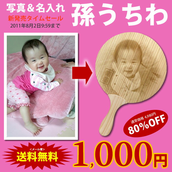 期間限定で相当おやすく提供されているようです。普段は2480円送料込。名前と顔写真がレーザーで焼きつけられた木製うちわ。敬老の日に孫の押し売りはいかがでしょうか。今ならポイント10倍。1日いっぱいまで、2店舗利用でポイント5倍ですから、実質860円の計算。そこにイーグルス勝利でポイント2倍なので、850円。いずれもエントリーが必要です。私もね、1店舗目は購入したので、2店舗目に1000円送料込の商品を買うと700円で買える計算なので、そこにポイント10倍となると、600円でこのうちわが手に入るので、考え中です。じいじばあばに子供を押し付けると、喜ぶだろうなあと。。。残暑見舞い・敬老の日 プレゼントにランキング1位の節電アイテム ペットの写真もOKおじいちゃん専用≪写真&名入れ 孫うちわ≫【ポイント10倍】新発売記念1000円ポッキリ二度と無いセール【夏ギフト_EXPO大阪】20110801_mobile_p10 そういえば、プラチナ限定50%オフクーポンもございます。