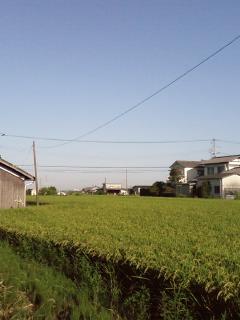 家の周りの田んぼは、今こんな感じです。これらの田んぼは私のものではありませんが、空も含めて、景色は360度私のもの!!高い建物がないので、ず~~~~っと下のほうまで空が続いているんですよ~~~