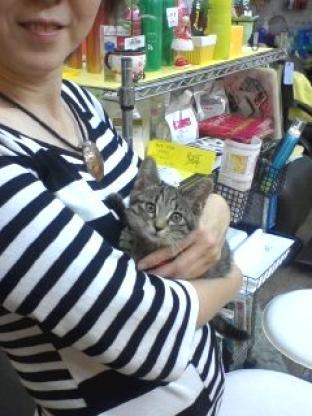 最高に可愛い猫ちゃんを、お客様が連れて来て下さいました。有難う御座いました生後2ヶ月位だそうです。。。でもとても人懐っこく、とても愛らしく!飼い主さんの躾がGOODみたいです☆☆♪どうです!!最高でしょう!オーイェー☆☆イヤー!素敵な猫ちゃん!名前が『ララ』ちゃんです。もう一匹白い猫ちゃん『キキ』ちゃんがいて、『キキ・ララ』ちゃん!!もう、可愛すぎです。サンキューBABYでした☆☆♪