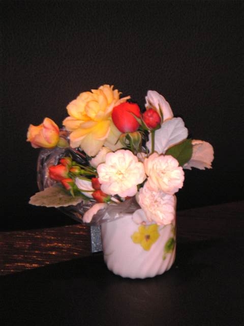お庭に咲いていたバラをお土産に頂きました花は好きですが、バラは管理が大変なのを聞いているだけに自分では育てられないと思っています。それだけに、こうして頂くと愛情たっぷりに育てたのが感じられて感動ものです