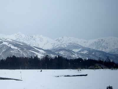 曇り、-5℃以下。冷え込んだ朝です。うちから白馬駅の国道に雪はほとんどありませんがところどころ氷状の固まりになっています。国道からそれるとまだずいぶんと残っています。