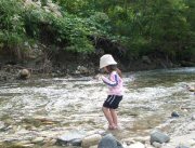 白馬村の南の端が源流の姫川で水遊び。大人は冷たくて入れないな~。子供も「つめた~い」と言っていました。たくさん遊んで満足したようです。