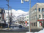 写真は白馬駅前からの北アルプスです。ゴチャゴチャと電柱や電線がなければすっきりするだろうなあ。