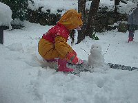 保育園から帰ったあゆは雪遊びが出来て大喜び。湿った雪なので雪だるま作りが簡単?