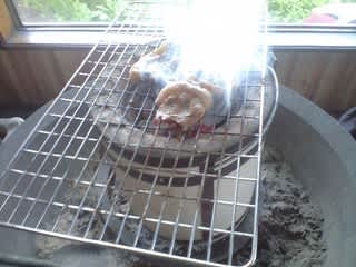 地元産いのしし肉や、ウサギ肉の炭火焼き