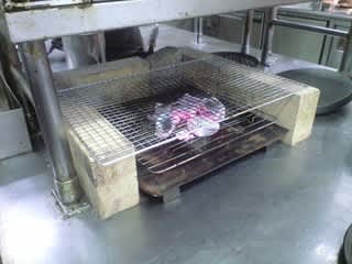 特設炭火コンロにセットされ、肉などが焼かれます。