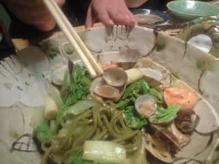 茶そばの洋風パスタ仕立て、なか井の大将のネーミング曰く