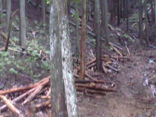 かなり流れて谷に集まった間伐した木