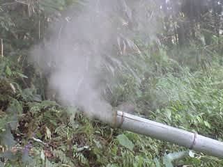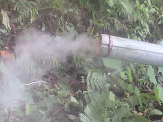 炭窯には昨日から火が入っていて、今日は炭化中。