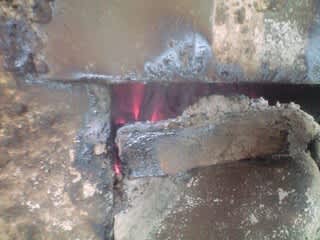 中から窯の内部が見えます。ここから燃焼ガスが吹き出ます。