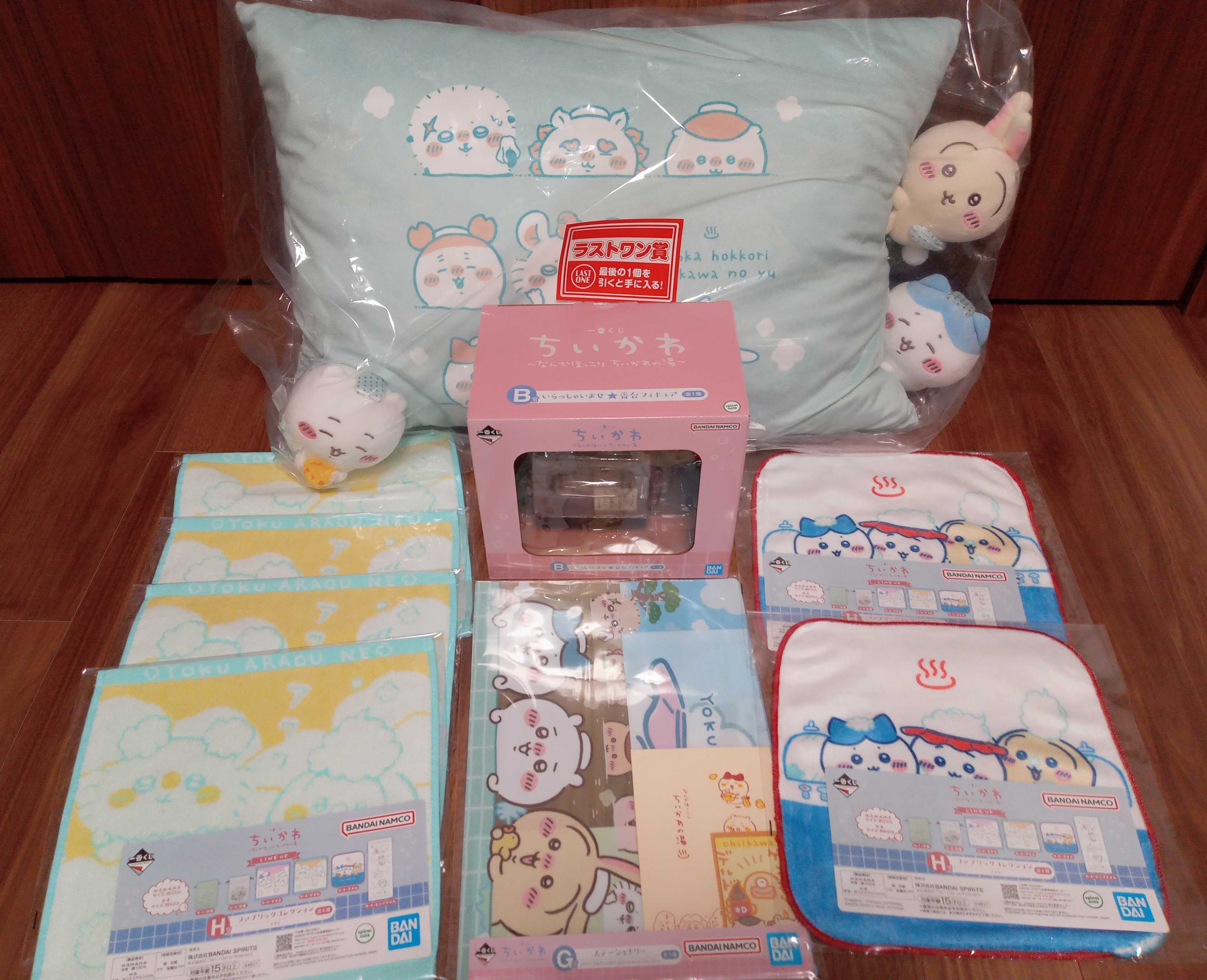 こんばんは〜そして19日から始まったちいかわ1番くじなんかほっこりちいかわの湯我が家も引いてきましたよ〜結果はこちらはい。またまたラストワン賞ゲットしちゃいました〜前回ラストワンをゲットしたのは夕方くらいだったので今回もそれくらいを狙って3回ほど覗きに行きましたが(笑)3回目でちょうどラスト8枚になっていて〜お一人様5回までだったので 子供と2人で全部引かせて頂きました〜ラストワン賞のクッション長方形でかなり大きくてもはや枕かも後ろ側の絵柄も〜回りのちいかわ達も可愛すぎるそしてまさかのB賞いらっしゃいませ番台フィギュアまで残ってましたラッキーこちらもちいかわとハチワレ可愛いあとはG賞のステーショナリーH賞のタオルは同じ絵柄が大量ですが〜なによりラストワン賞のクッションがゲットできたのが嬉しすぎて〜我が子も大喜びでした(ただ家族3人で取り合いでしたが〜)なおファミマとローソンは19日開始のお店が多かったようですがセブンイレブンの店舗は本日20日くじ開始のお店が多そうです〜今回は対象店舗も多そうだし上位賞が出る確率も高そうかも〜なのでちいかわくじが気になる方は是非お近くの店舗でチャレンジしてみて下さいお店によっては2回目がある場合もありますよ〜ヽ(^o^)丿あともし狙えそうならラストワン賞も一押しです〜スーパーセールで予約していたカレンダーも本日発送になりました〜こちらも楽しみ〜日めくりカレンダーは365日あるのかな卓上 ちいかわミニチュア日めくり(2026年1月始まりカレンダー)ポップアップ卓上 ちいかわ(2026年1月始まりカレンダー)ちいかわ ダイカット(2026年1月始まりカレンダー)ちいかわ コミックデザイン(2026年1月始まりカレンダー)ちいかわ スクエア(2026年1月始まりカレンダー)エントリー&ママ割ポイント最大10倍楽天トラベル楽天スーパーセールは本日20日までエントリーするだけで最大30000円クーポン当たるかも