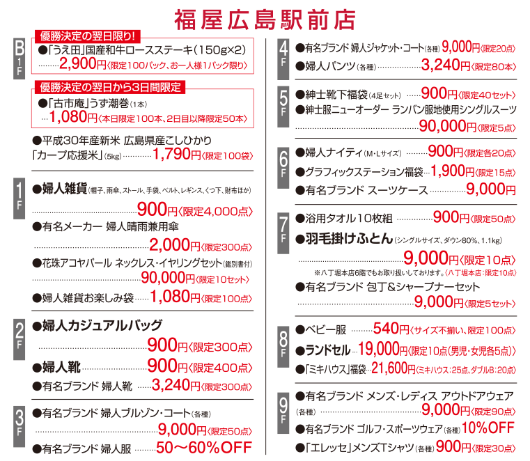 カープ優勝セールが始まりますが