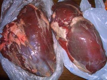 今年もしっかりゲットしたよ アップにするとこんな感じ いったい何キロあるんだろう?と思って量ろうとしたけど、うちの量りは1キロしか量れない。。。小さい方を量ってみたけど、測定不能。。。初物なのでちょこっと味見分カットして量ってみたけどやっぱり測定不能。。。ちなみにこの肉の塊は鹿のももの塊です。今年最後の猟に行く前に予約しておいたので獲れたてを届けてくれたよ♪私の働いてる会社の会長&息子は太っ腹だったよで、早速獲れたてを味見したよ♪ 今晩はステーキ食べました(笑)真ん中のこんにゃくの横にあるのが鹿です実は去年も言ったかもしれないけど我が家はあんまり食べないんだよね。。鹿。。。でも柔らかくって臭みも全然なくって美味しかったです。より脂っこくなくって鹿の方が食べやすかったよ。ちなみにこんにゃくはももかが作ってくれたこんにゃくです。明日のおでんに仕込んでた中から味見♪まだ煮込みが少なかったけど弾力性のある噛み応えバッチリのこんにゃくでした付けあわせの芋は北あかりです。この北あかり。パパが付き合いで買ってきたんだけど、正直言って北あかりは好きじゃないんだよね。。。北あかりって溶けるでしょ。だから煮込みとかには使いにくいし。。。この前、この芋でポテトサラダ作って思いっきり失敗したから余計に嫌いになった!あんな不味いポテトサラダよく作れたもんだ!と作った自分で感心しちゃうくらいめちゃくちゃ不味かったの!(笑)でもね。10キロ×2箱も買ってきたの。。。まだ手付かずで1箱そのまま残ってるし、手をつけたのも半分残ってる。。。はぁ~~