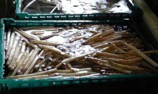 ついに今日から始まったよ。。。何がって。。。これが これはなんでしょ~~わかるかな?正解は。。。 そう。ホワイトアスパラですぅ~本格的に始まるのは3~4日後かららしいよ。。。で、今日は私は午前中はゴボウと戦って午後からはお休みしか~し!初物見たいじゃん♪食べたいじゃん♪買い物ついでにほの・ももと行ってきたよ。そしてしっかりもらってきたよでもちゃんと働いてもきたんだよ~今日収穫されたアスパラたちは明日道の駅で売られるそうです。でもね。今採れ始めのアスパラはまだ完全なホワイトじゃないんだよね。。。中には完全なホワイトも混ざってるけど取れ始めのはペルーといって真っ白じゃなく先っぽが黄色っぽいのとか緑っぽいの。。。でも、ここだけの話、これがまた美味しいんだよね~なのでしっかりゲットしてきたよ~~~ ちなみに明日道の駅でグリーンも売るみたいだよ。グリーン今日のはこんな感じだったよ ハウスものだから甘みは少々物足りないけど柔らかくて美味しいです♪それから昨日は小学校の先生との顔合わせと言う名の飲み会でした。昨日の料理の1部。。。 はりきって新しい相方のデジカメ連れて行ったけど、食べるのに飲むのにおしゃべりに夢中になってほとんど撮ってなくって。。。1次会ではカルピスサワーをジョッキー4杯飲んだよ。この後、もちろん2次会にも行きました村のスナック。。。ビールをジョッキーで5杯飲んだけど、翌日の仕事をふと思い出して(笑)最後はウーロン茶飲みました♪しかも今日はちゃんと起きて仕事といっても半日だけだけどね~~さて、明日は日曜日。どうしようかな~~アスパラ行く?それとも最後の日曜日にする?もともと明日は行者に行く予定だったんだけどなぁ~~明日の日曜日を逃すとアスパラ終わるまでお休みはなくなるんだよね。。。悩めるところだわ~~~(笑)そうそう!今年のアスパラまだホワイトしか見てないけど、めっちゃモノいいです!普通は出始めは細いらしいんだけどなかなか太くっていい感じだったよ。味の感想は今晩食べてから報告しますね♪