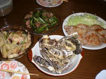 メニュー・グリーンアスパラとベーコンのバター炒め・ホワイトアスパラ(ペルー)とベーコンのバター炒めチーズ焼き・豚ロースソテー・蒸し牡蠣稚貝おっと、それから ・シジミのお味噌汁相変わらず手抜きな晩ご飯でしたしかもベーコンとキャベツとシジミ以外はタダです♪グリーンアスパラは裏の畑から収穫したのだし、ホワイトアスパラは頂き物だし、豚肉も頂き物でしょ~それから牡蠣も頂き物~~今日のおすすめはやっぱ牡蠣かなぁ~ 稚貝なので小さいけど今年のは1年貝くらいの大きさがあったので食べやすかったよ。稚貝といえば今年はホタテの稚貝のあたりが悪かったよ。。。毎年もう見たくないってくらい届くのに(笑)今はアスパラが1日おきに食卓にあがるのでそろそろ見たくなくなってきたかも。。。でもね。仕事ではまだホワイトが少しの収穫だからまだアスパラ隊じゃないの。。。なので今もゴボウ隊ですぅ~あっ、でも畑じゃないよ。工場で機械が選別してくれるのを箱詰めしてるの。でもね。これの機械が曲者でめっちゃ機械にこき使われてるのよ~2S、S、SM、M、Lの5種類の箱詰めなんだけど、2人でするなら程よい感じ、3人でするなら楽勝♪しか~し!1人でやらされた日には汗だくぼろぼろ。。。それに5種類の他に2Lアップを大きなコンテナに移さなくっちゃなんないし。。。ゴボウはまったく食べてないけどもう見たくも触りたくもないですぅ~そんな私、今年も腕のみマッチョになりかけているのは気のせいかしら。。。そして今年は腰が去年以上に弱くなってるの。。。昨日もギックリになりかけて3時まで頑張ったけどかなりやばくなったから休憩後早退して今日は休んで1日家で安静にしてたよ。やっぱ年なのかなぁ~年々気持ちと体が合わなくなってきてるよ。。。