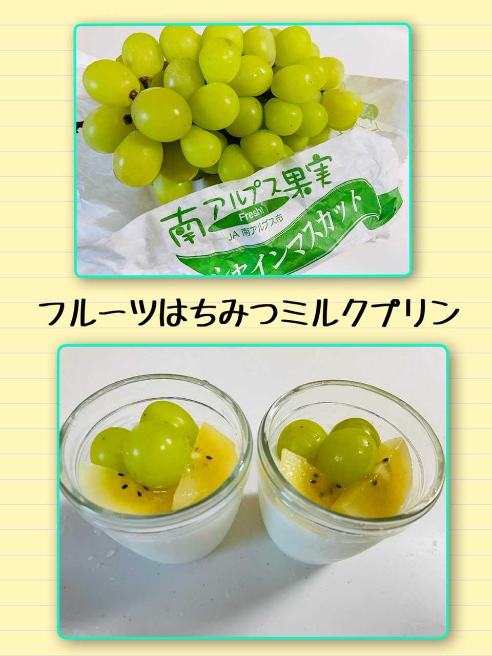 ​『はちみつミルクプリン』​ のはちみつの量を少なめにしてフルーツのせていただきました~~