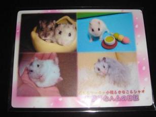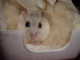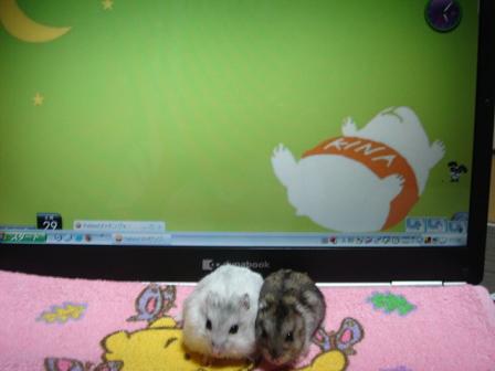 ねえねえマーチ話があるんだ~ねえねえ・・な~に今、食事中なんだけど~げっ!背中でかっ!白クマかっ!お兄ちゃんとこ行くから、待っててくだちゃ~いカジカジ・・カジカジ・・は~い、なんでちゅかマーチ~ハム会議だよ~みやっちばーちゃんちから・・やべっ!間違えた!みやっちお嬢さんちから、もうじき子金ちゃんが来るらしいでちゅよ・・しかも、お笑い系らしいでちゅよ・・で、名前も決まってるんだって!お母さんはお迎えが決まったときから、小金君(コキン君)って決めてたらしいでちゅよ・・・ヒソヒソ・・ヒソヒソ・・ハム会議続行中・・・お笑い系の弟でちゅか・・僕はどうなるんでちゅかね~小金君、お家に来たら仲良くしようねあ、でもここは二人でいっぱいでちゅからね。入れてあげられないの、ごめんね遠いから、気をつけて来てくだちゃいね。